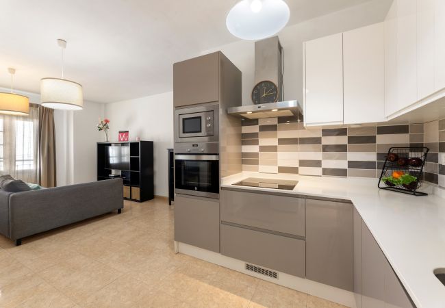 La cocina americana está completamente equipada con electrodomésticos de última generación, incluyendo nevera, lavadora, horno, microondas, cafetera, tostadora, hervidor, exprimidor y una completa dotación de menaje. Perfecta para preparar deliciosas comidas durante tu estancia.