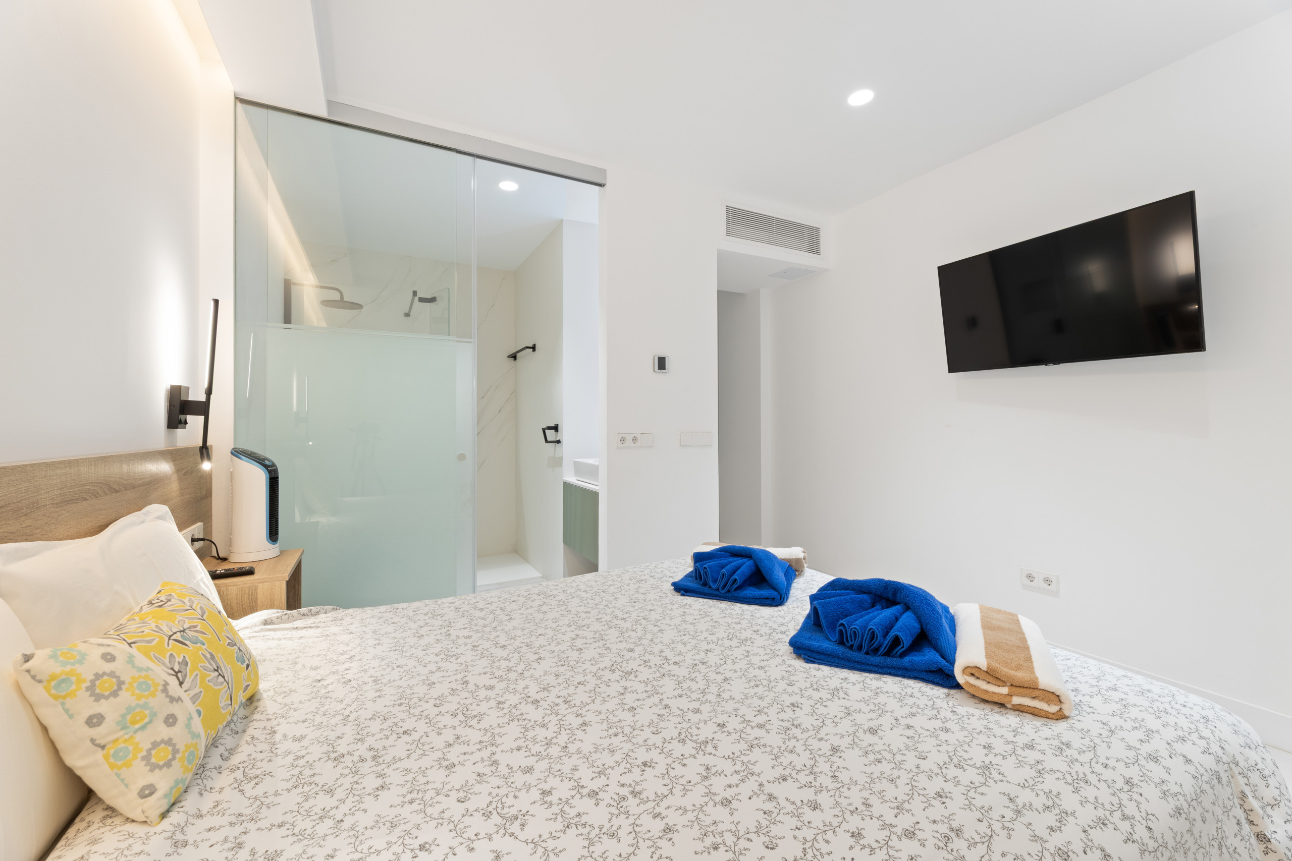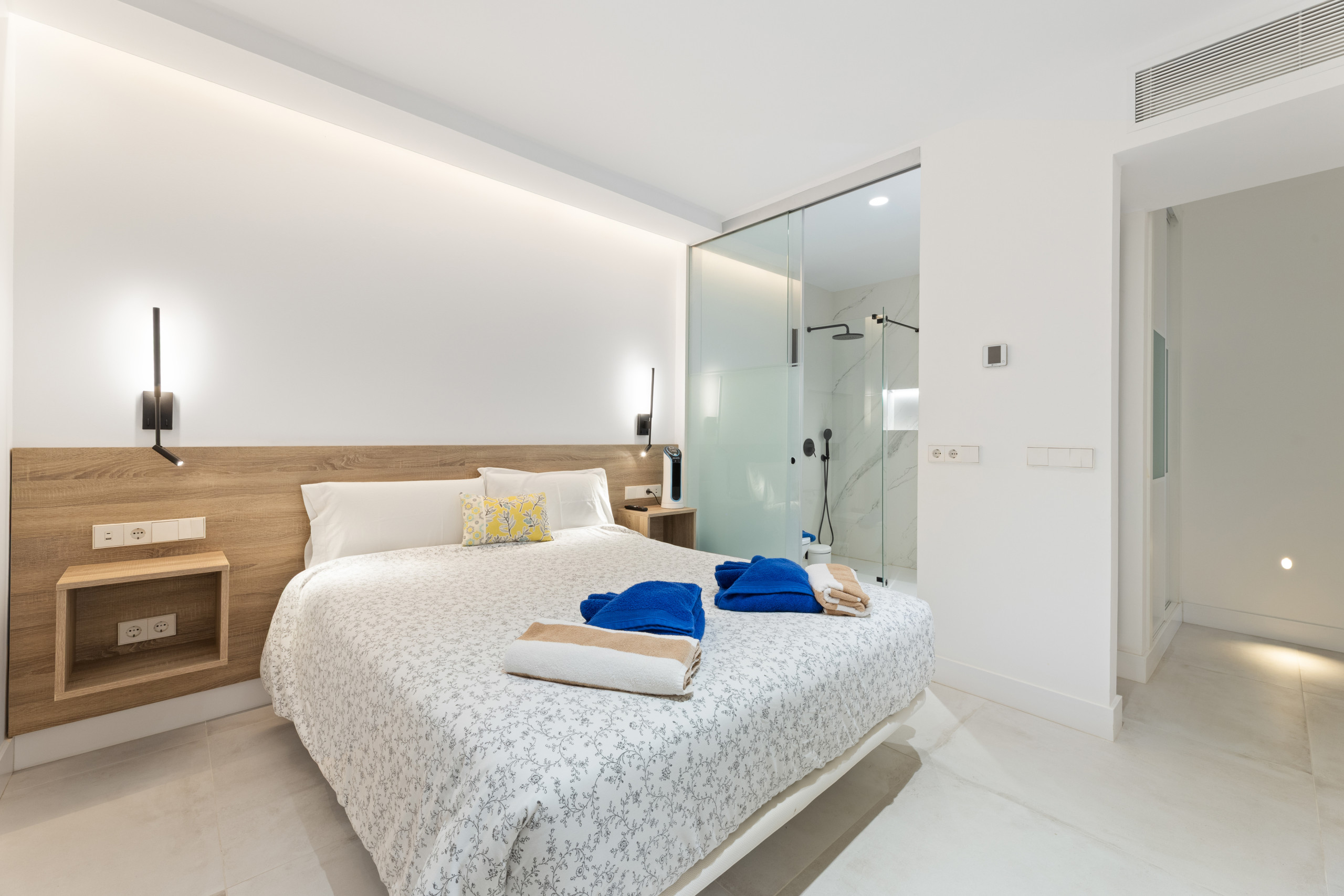 La propiedad, luminosa y amplia, dispone de tres elegantes dormitorios dobles que invitan al descanso, dos baños modernos (uno en suite) y una amplia zona de salón-comedor con cocina integrada. Todos los rincones están diseñados para ofrecer el máximo confort y bienestar, equipados con detalles premium y tecnologías de última generación. La terraza privada es el escenario perfecto para desayunar frente al mar, disfrutar de la brisa atlántica o contemplar las puestas de sol más impresionantes de la isla.