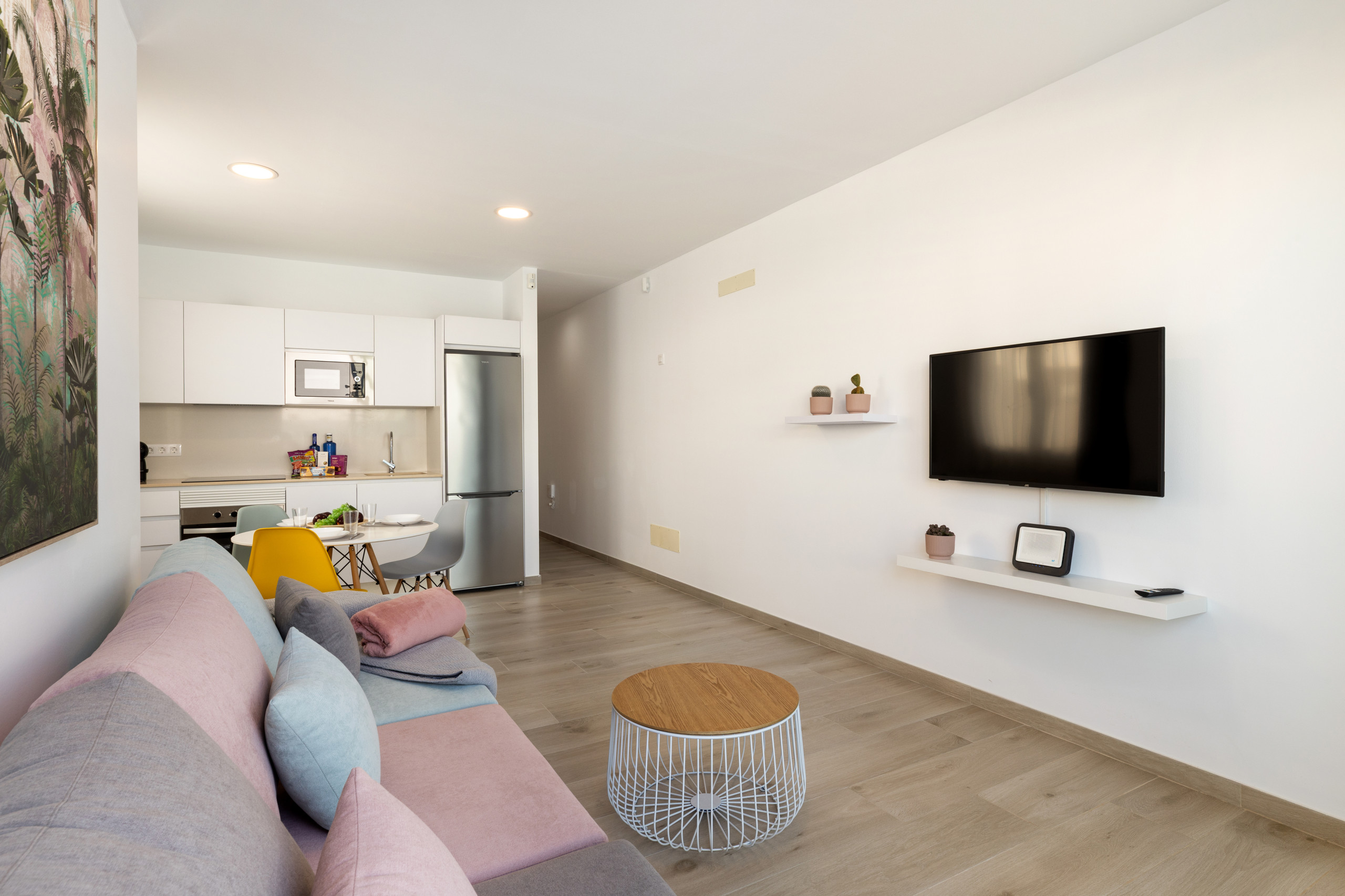Elegante apartamento recién reformado en Playa Honda con cocina equipada, plato de ducha, Wifi gratuito y una inmensa Smart TV con pantalla plana. A tres minutos caminando del paseo marítimo, bares, restaurantes y la playa. Ideal para vacaciones. Capacidad para dos personas en cama doble y posibilidad de una tercera en sofá cama.