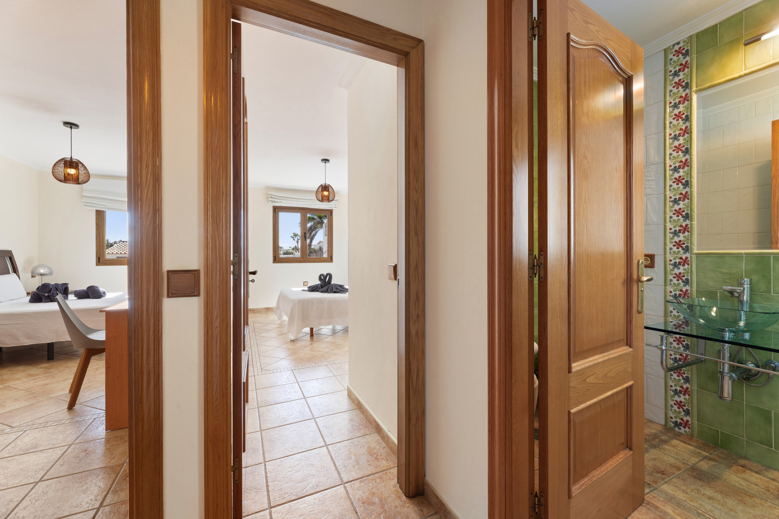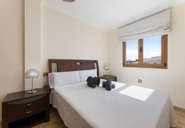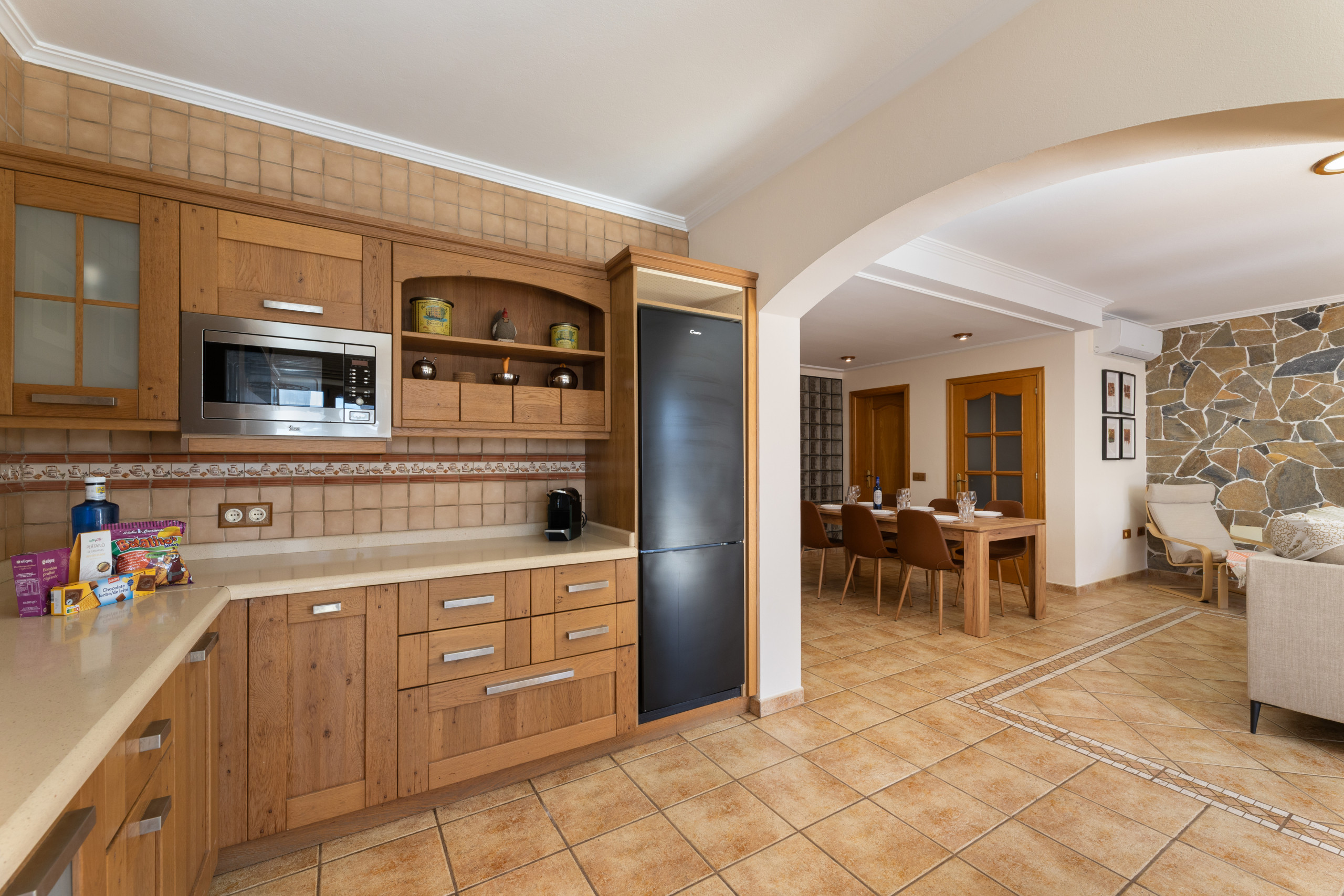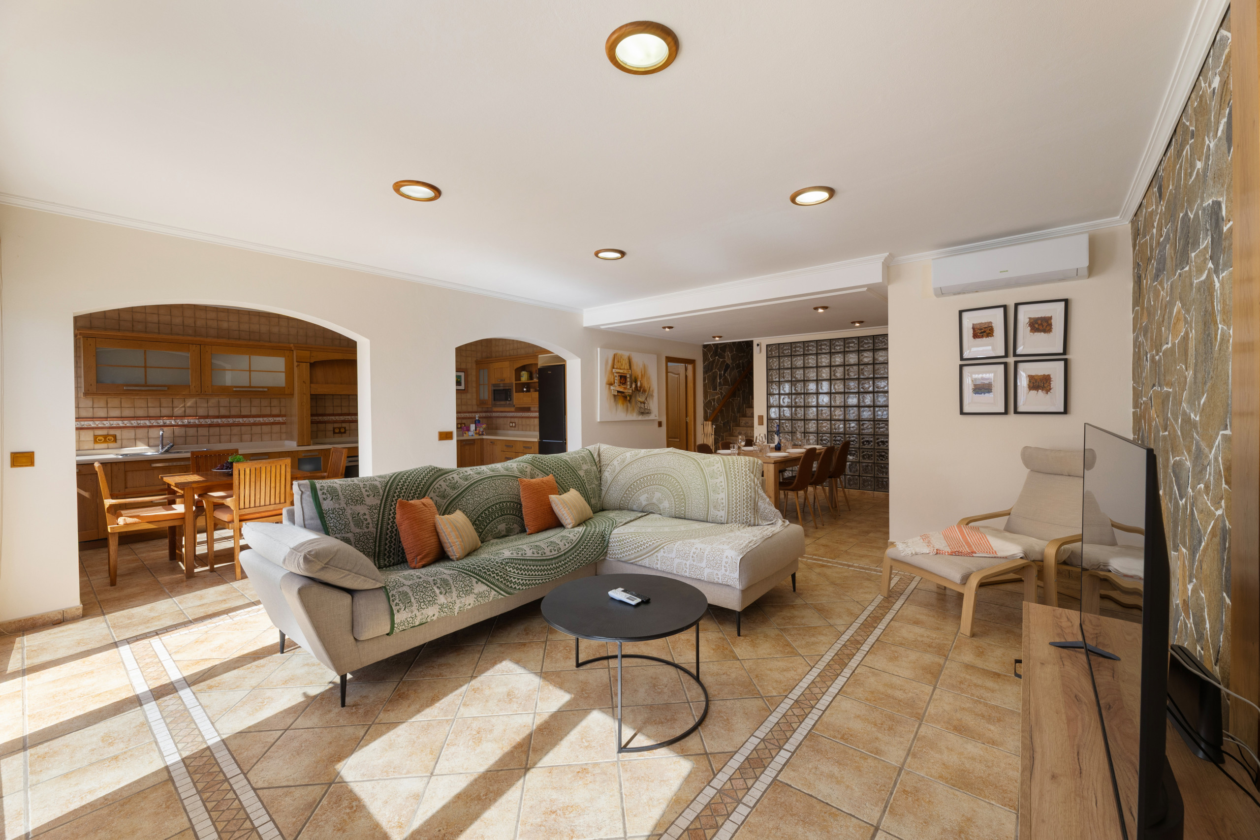La terraza exterior ofrece el auténtico toque canario: un espacio inmenso para relajarse al sol, disfrutar de comidas al aire libre bajo el cenador o sumergirse en el jacuzzi mientras cae la tarde. Además, tanto las habitaciones como el salón disponen de aire acondicionado para mantener siempre la temperatura ideal.