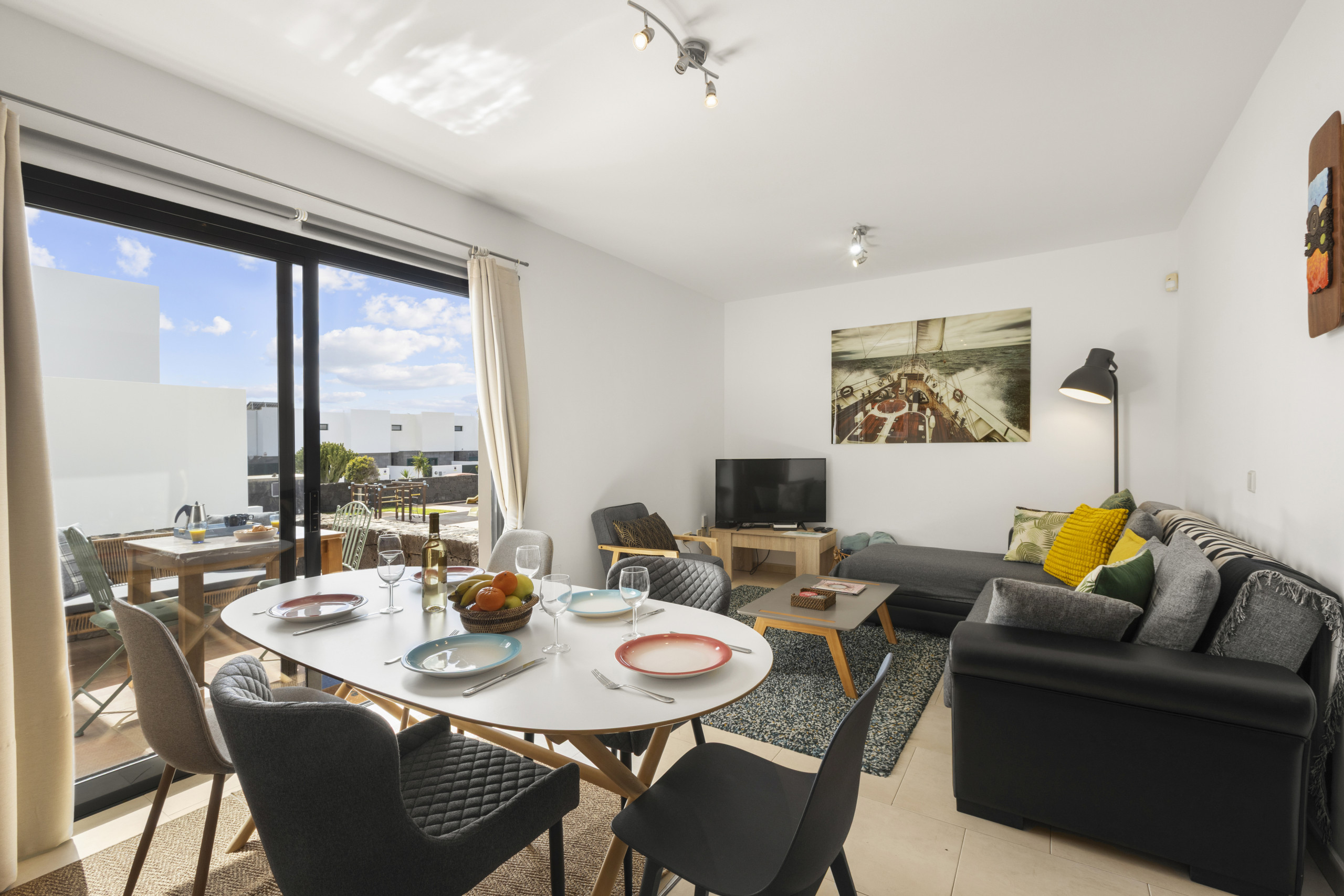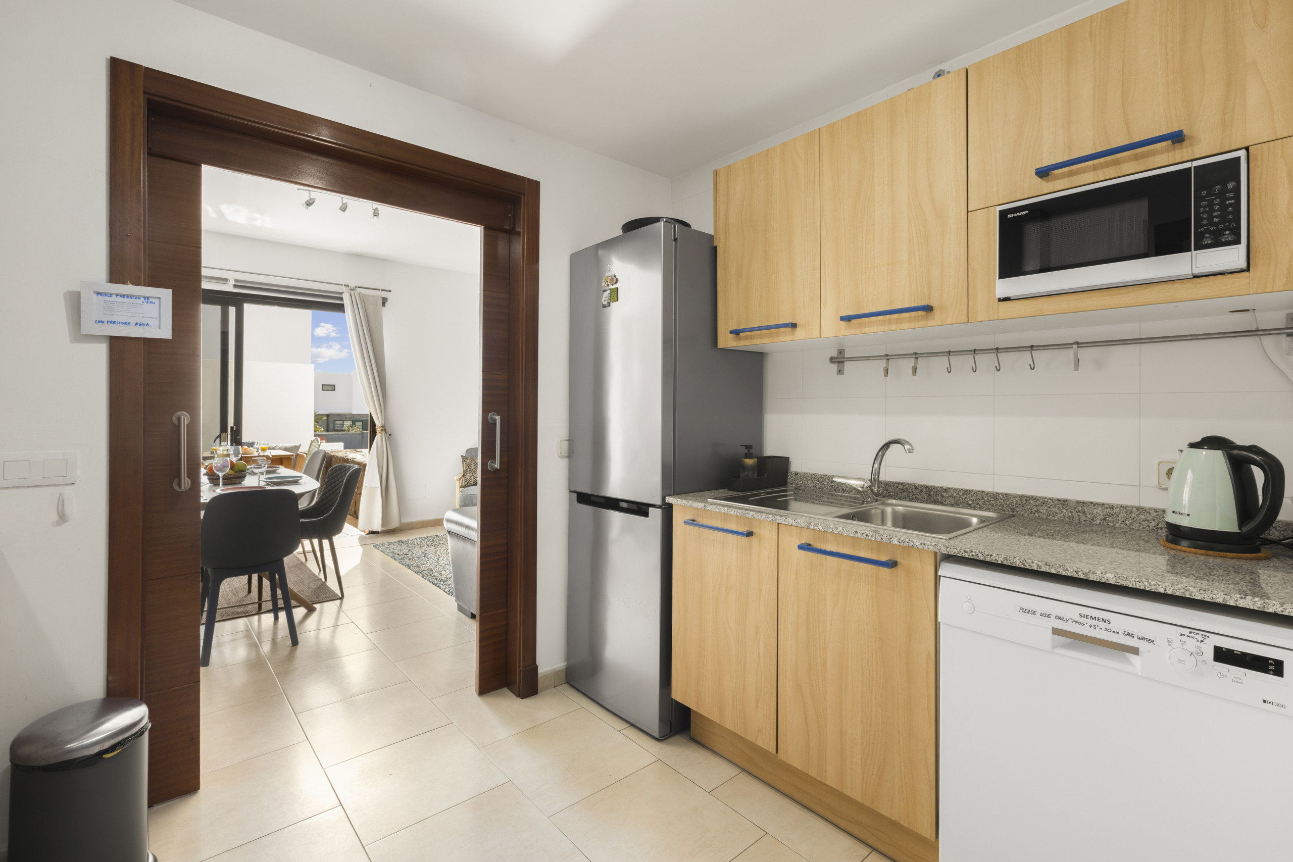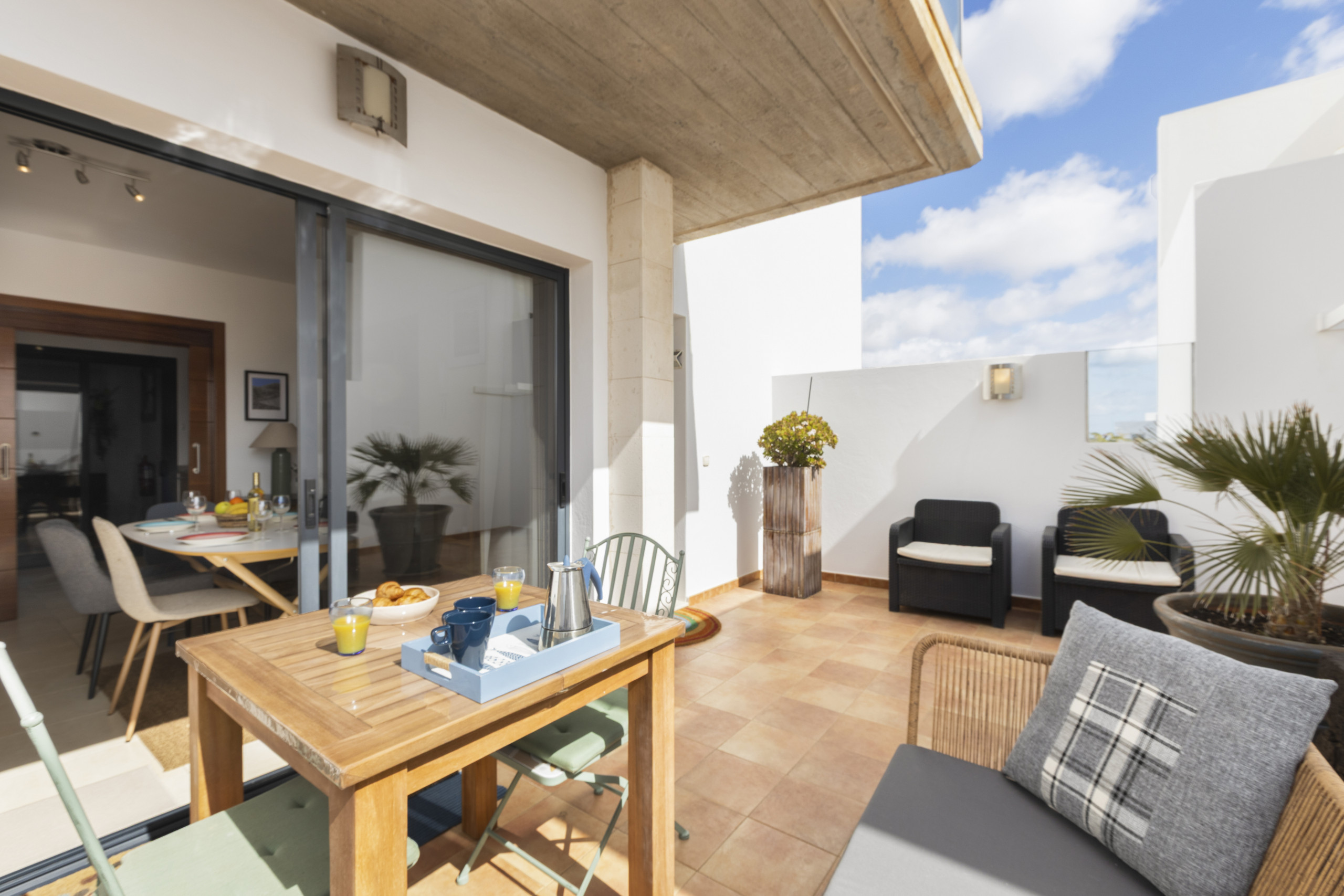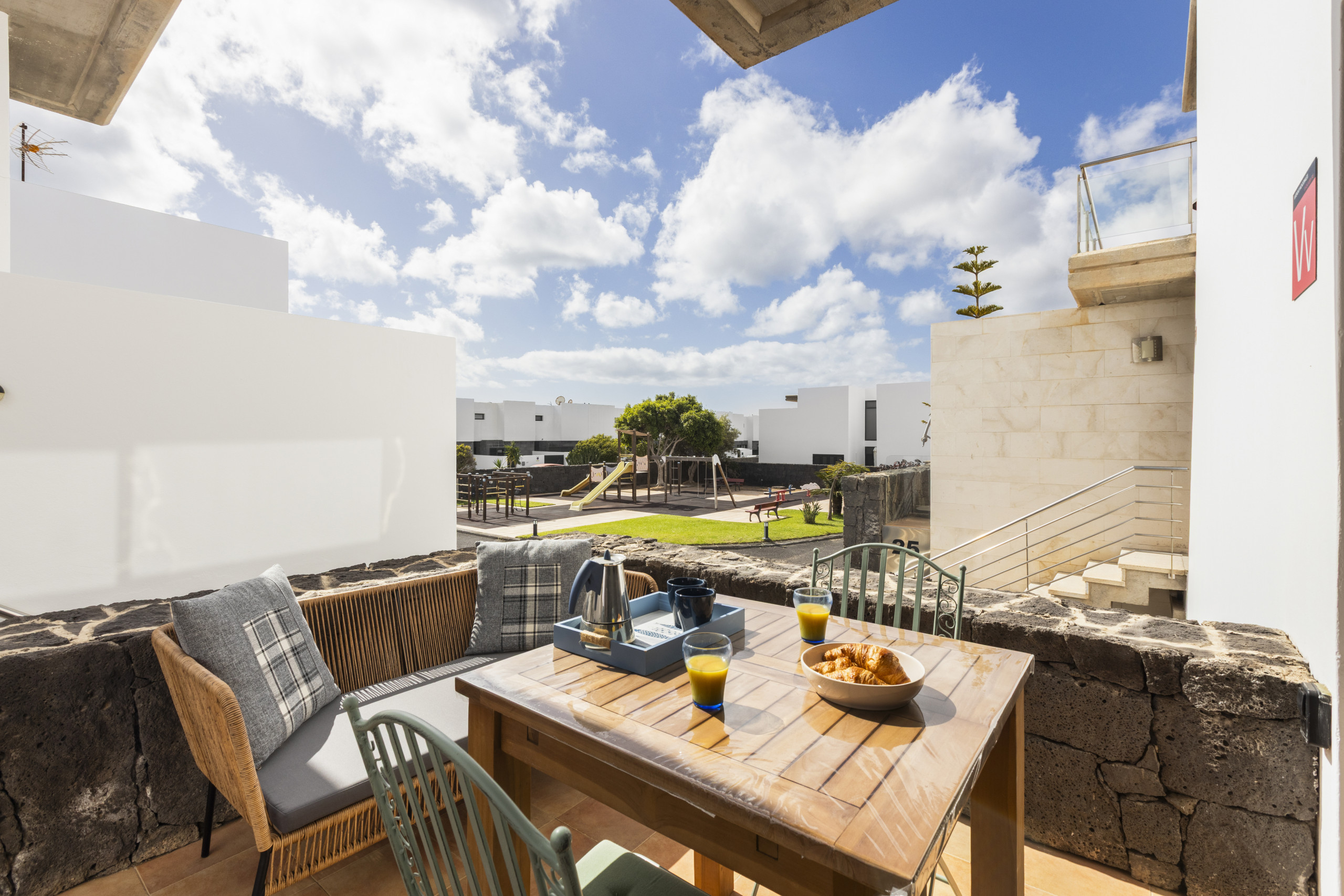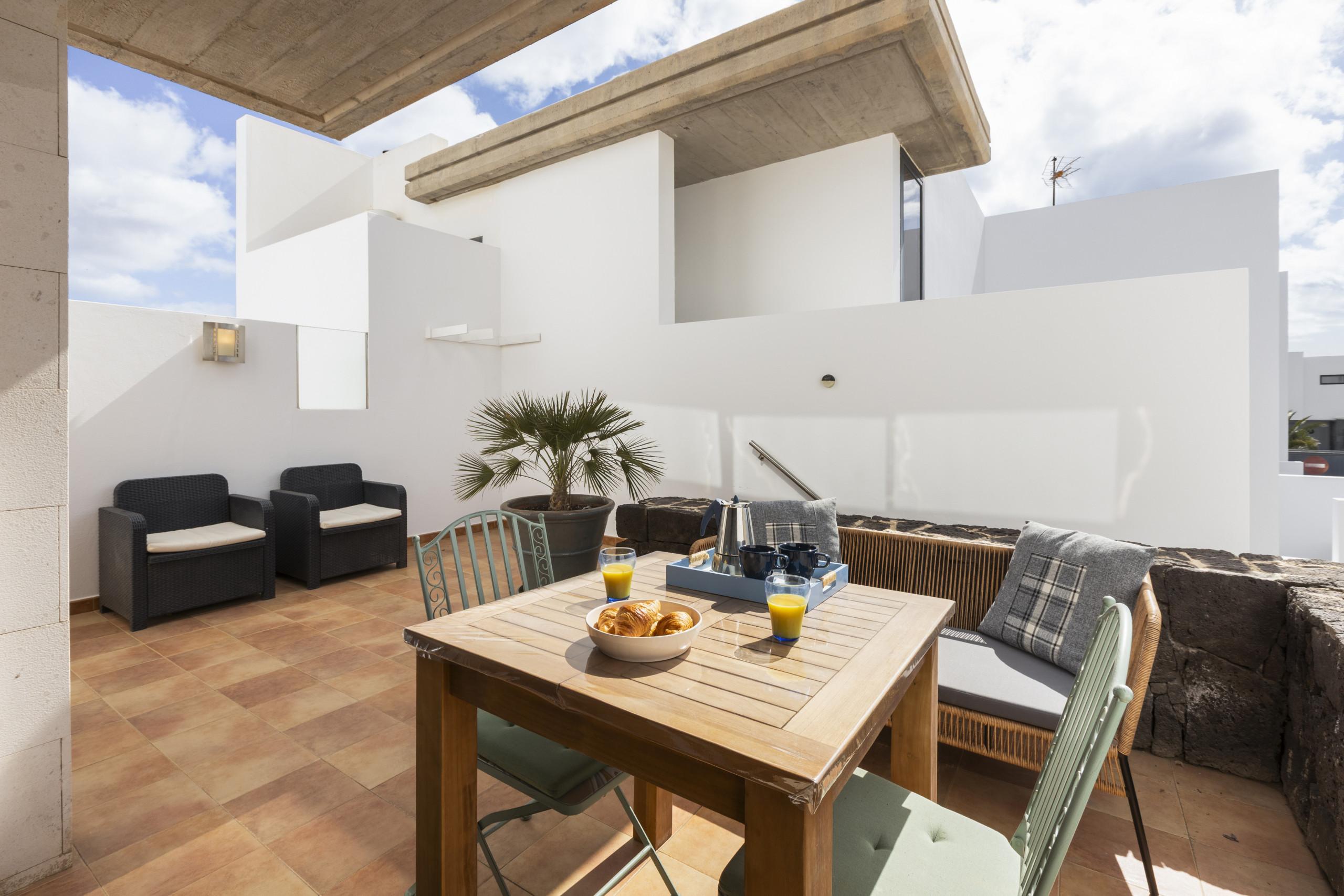 The terraced house in Costa Teguise has 3 bedrooms and has capacity for 6 people. The terraced house is 208 m². The accommodation is equipped with the following items: garden, garden furniture, fenced garden, 60 m² terrace, washing machine, barbecue, iron, internet (Wi-Fi), hair dryer, central heating, air conditioning throughout the house, 1 TV. In the hotplate of glass ceramics independent kitchen, refrigerator, microwave, oven, freezer, dishwasher, dishes/cutlery, kitchen utensils, coffee machine, toaster, kettle and juicer are provided.