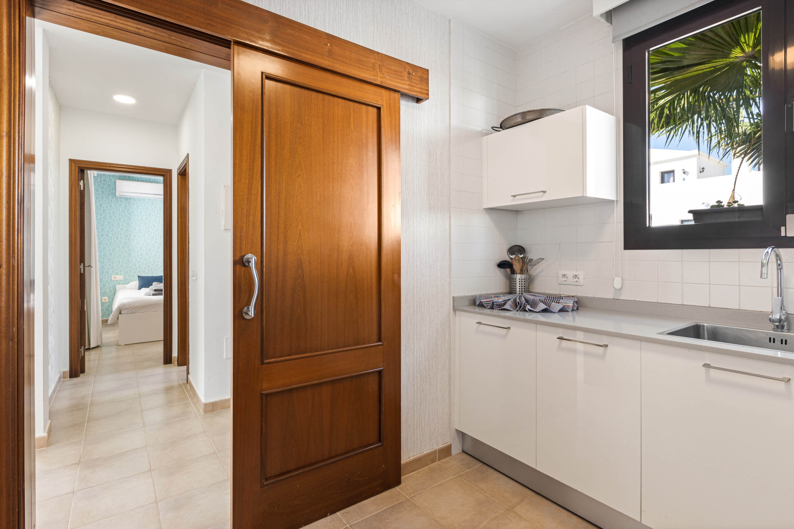 Unwind in the bright living room with direct access to the pool, equipped with comfortable sofas and a Smart TV. The kitchen is fully equipped with modern appliances so you can prepare your favorite dishes.
